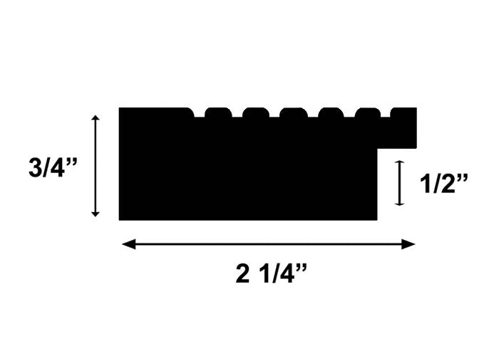 • Considerations of depth when selecting a frame style: Every frame style has a rabbet specification denoting how deep the inside cavity of the frame is. When framing a thin print with acrylic or glass and backing and even matting, the total depth of the items going into the frame would be around 1/4" to 3/8" which nearly all frames can accommodate. When framing artwork of significant depth such as a stretched canvas, you should always compare the depth of your item with the rabbet depth of the frame style and know that if the rabbet depth is less than the depth of your item, your item will stick out from the back of the frame by the difference.